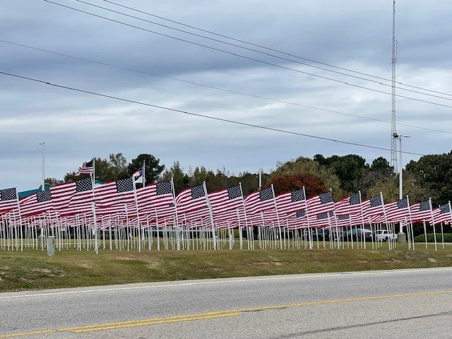Each office will host 500 flags, which will be on display November 5-13. Each 3' x 5' flag can be sponsored by friends, family, etc.